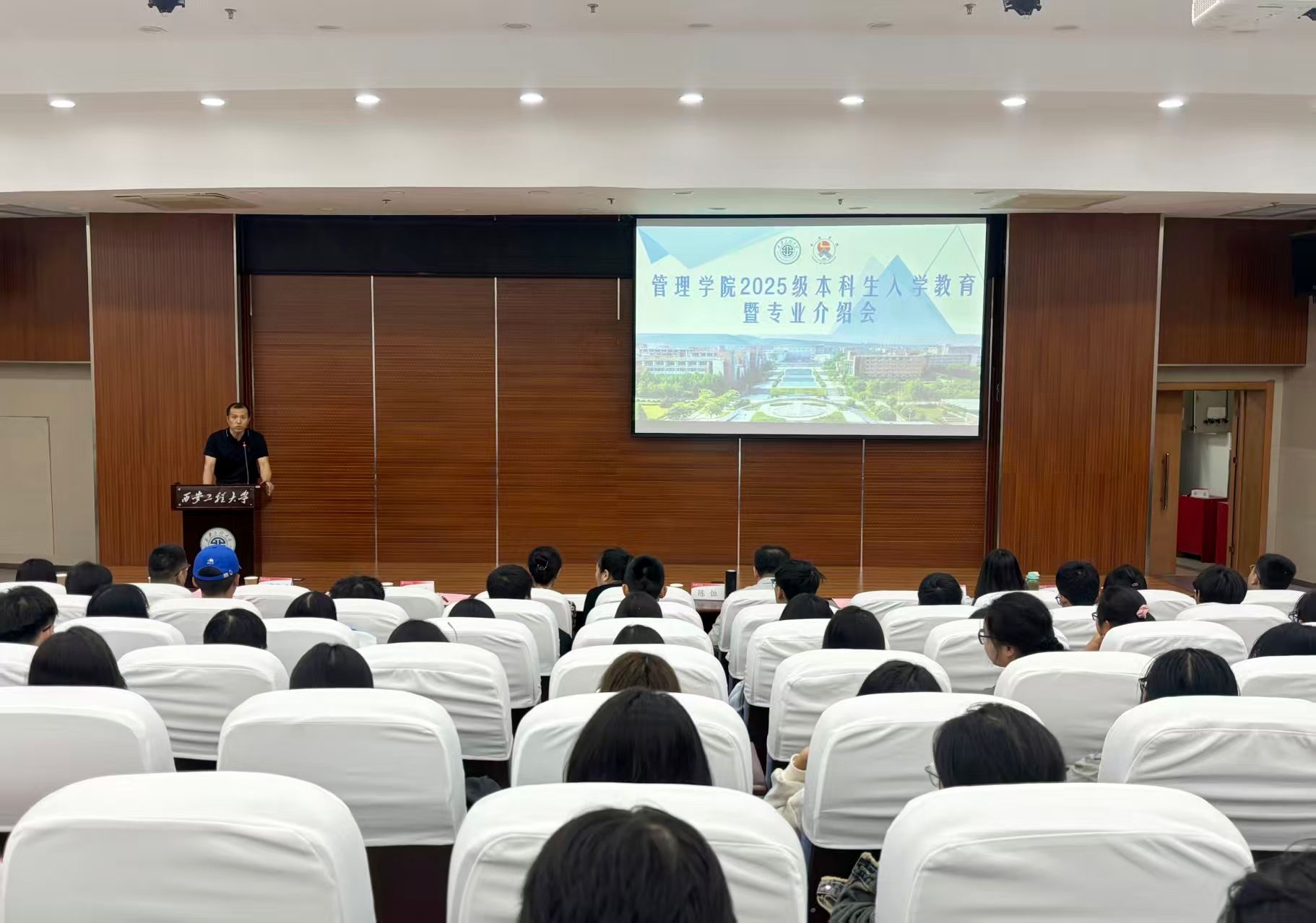 学院党政班子、专业负责人、教师代表、辅导员、新生班主任及2025级全体本科生共同参加。各专业负责人系统深入地介绍了专业发展前沿、课程体系架构、人才培养目标及未来职业前景,通过生动案例激发了新生的专业兴趣与学习热情。院长寄语和教师代表发言,则从不同视角为新生提供了宝贵的学业规划经验,帮助新生精准锚定专业学习目标与成长路径。