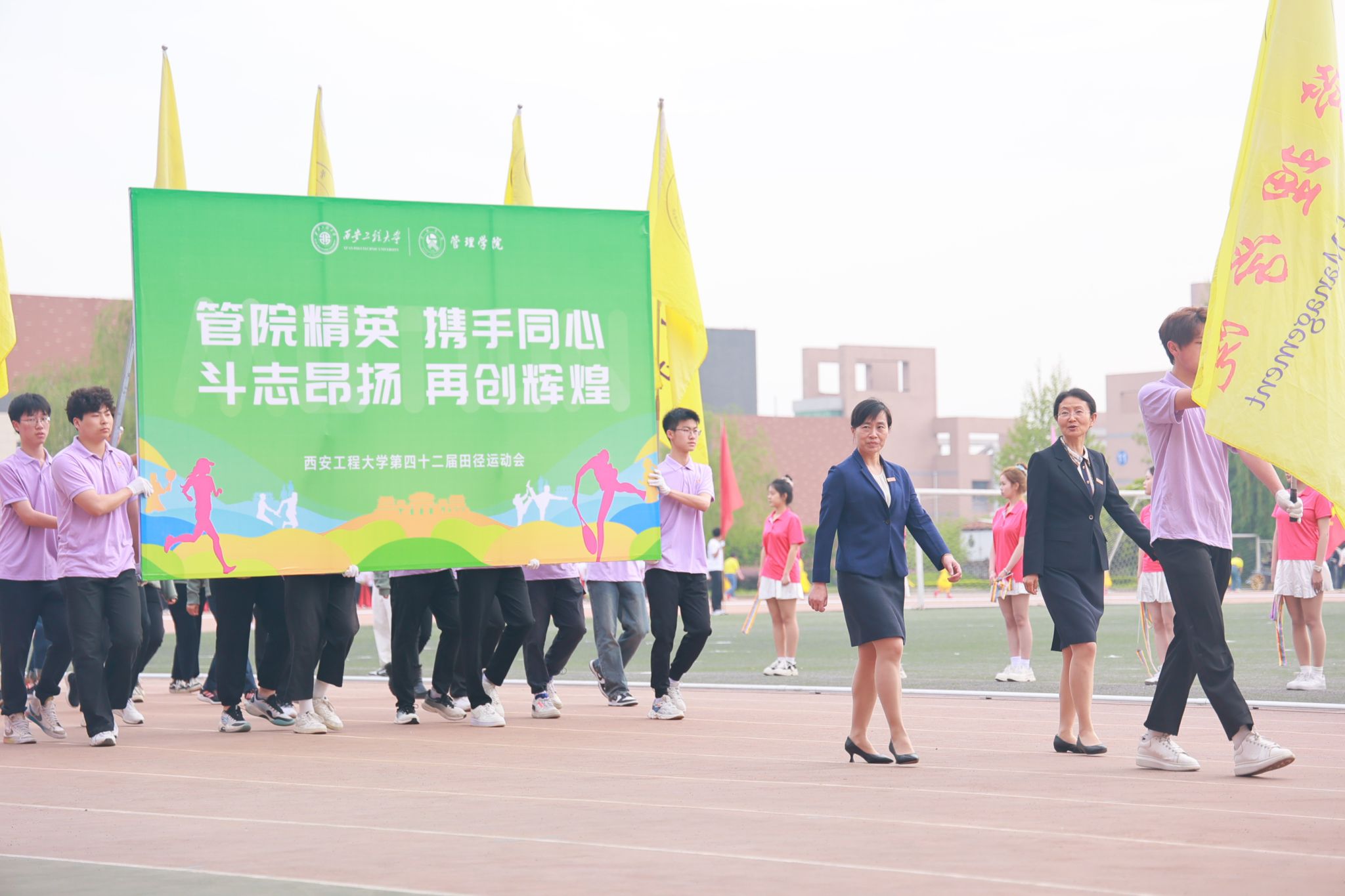 鲜衣怒马正少年,披荆斩棘勇争先!开幕式上群亮相,管院师生展风采。身着紫衣,脚下踏风而来;向阳花开,青春鲜艳明丽。整齐嘹亮的口号,富有青春气息的舞蹈,充分展现我院师生的青春与活力。