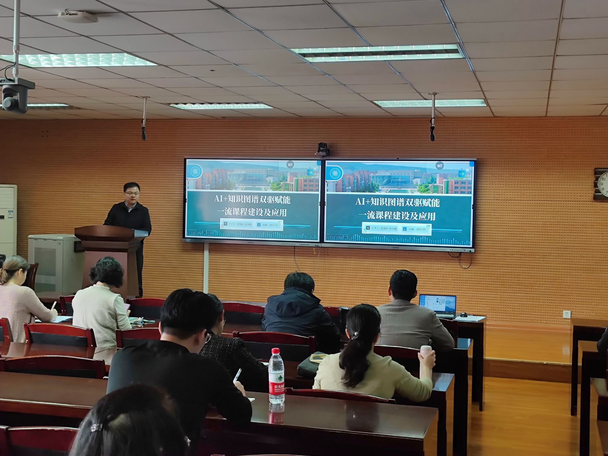 为强化教育数智化赋能,推进新时代学校教学资源建设,2025年10月13日下午,suncitygroup太阳新城在金花校区610举办了AI智慧课程建设专题培训。邀请了智慧树网金课咨询师、高级课程顾问张雪敏担任主讲人,全体教师及教学管理人员参与了此次培训活动。副院长陈恒主持了培训会。