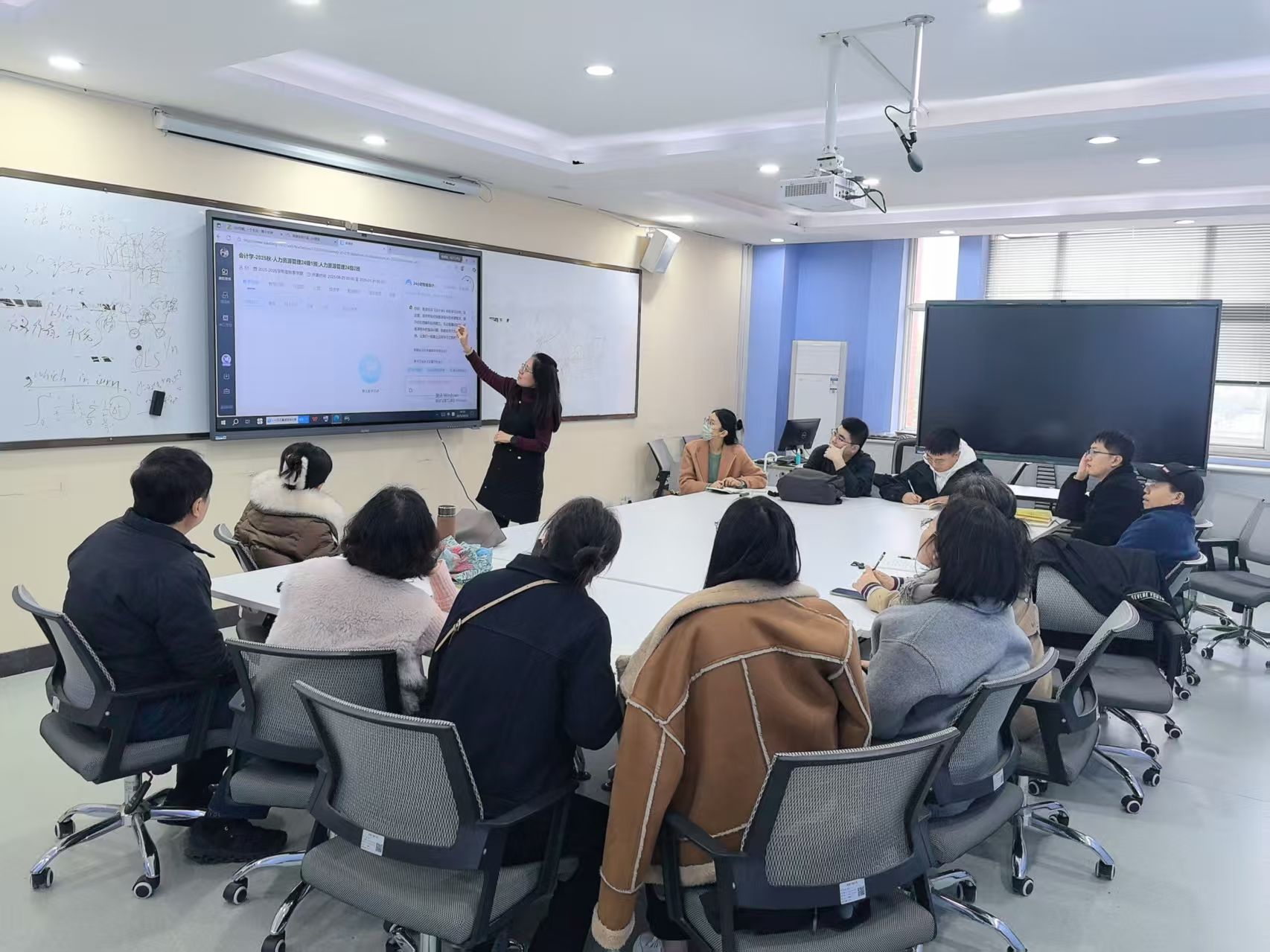 2025年10月20日下午,会计系于金花校区7号楼607召开智慧化课程案例学习会,会计系全体教师参会,王小红老师主持本次会议。