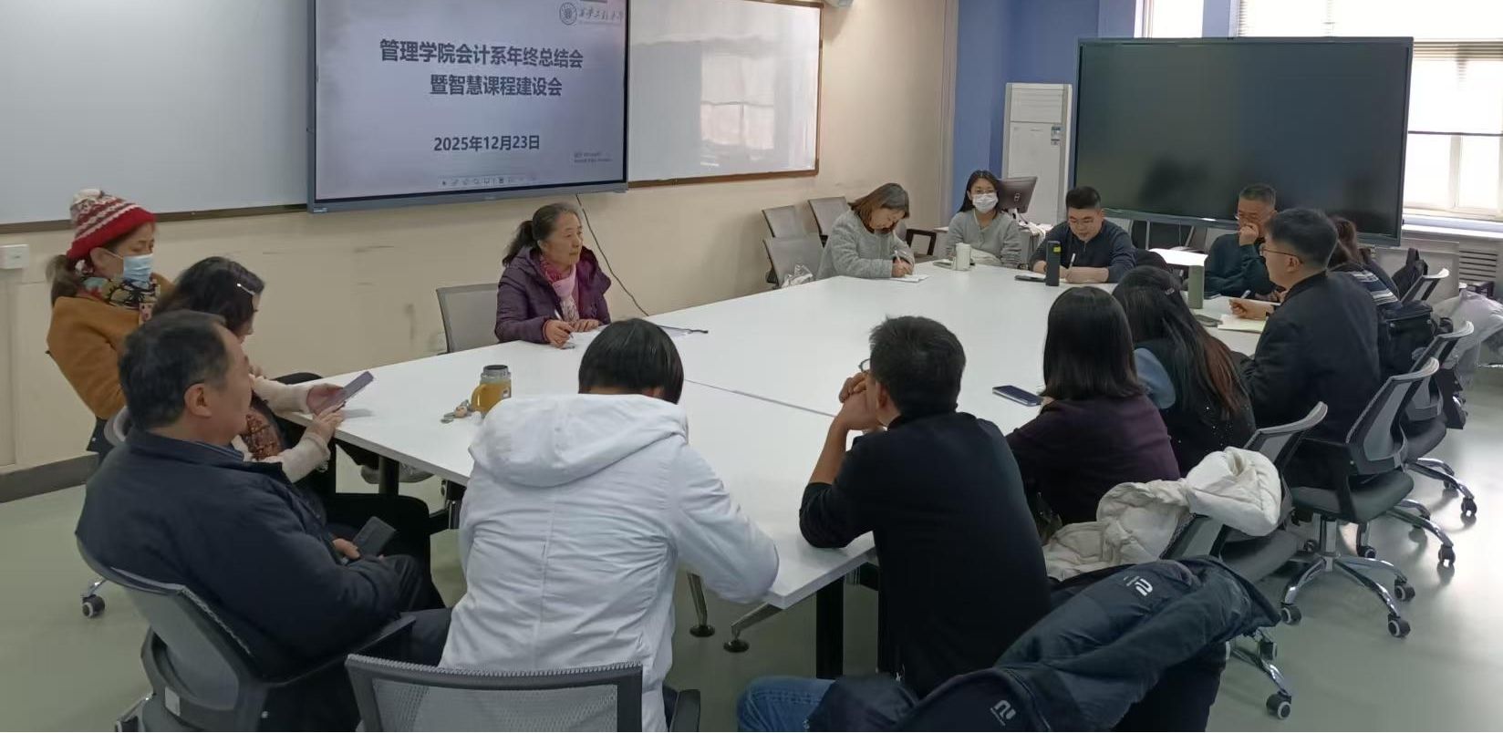 2025年12月23日下午,suncitygroup太阳新城会计系召开2025-2026学年第一学期年终教学工作总结会暨智慧课程建设会议,王小红主持本次会议,会计系全体教师参加。