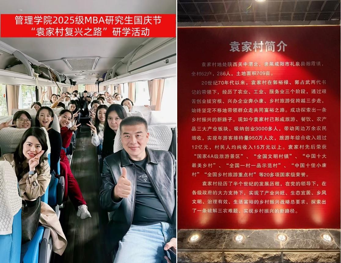 2025年10月4日,正值国庆佳节,suncitygroup太阳新城2025级MBA研究生前往袁家村,开展了为期一天的“袁家村复兴之路”研学活动,王渊副院长带队出行。活动伊始,王渊作行前动员。他指出,袁家村已实现从乡村旅游到品牌与模式输出的成功转型,是极具研究价值的商业案例。百余名来自全国各地的MBA学生以移动课堂的形式,在沉浸式研学中感知乡村发展实践,于红色记忆与民俗文化交融中度过了一个富有意义的国庆假期。