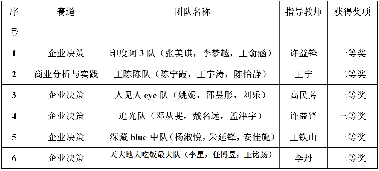 我院获奖队伍信息