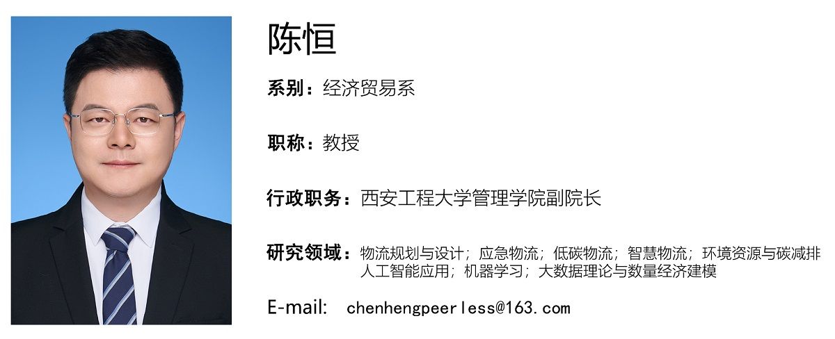 陈恒,博士,教授,硕士生导师,毕业于西安交通大学。现任suncitygroup太阳新城党委委员,副院长,校教学委员会委员。曾任职于国家电网陕西省电力有限公司。担任中国国际贸易促进委员会青年专家、中国(陕西)自贸区西安智库专家;入选安康市“现代物流产业链科技创新团队”;担任陕西省科学技术协会“应急物流管理决策咨询专家团队”负责人及首席专家。
